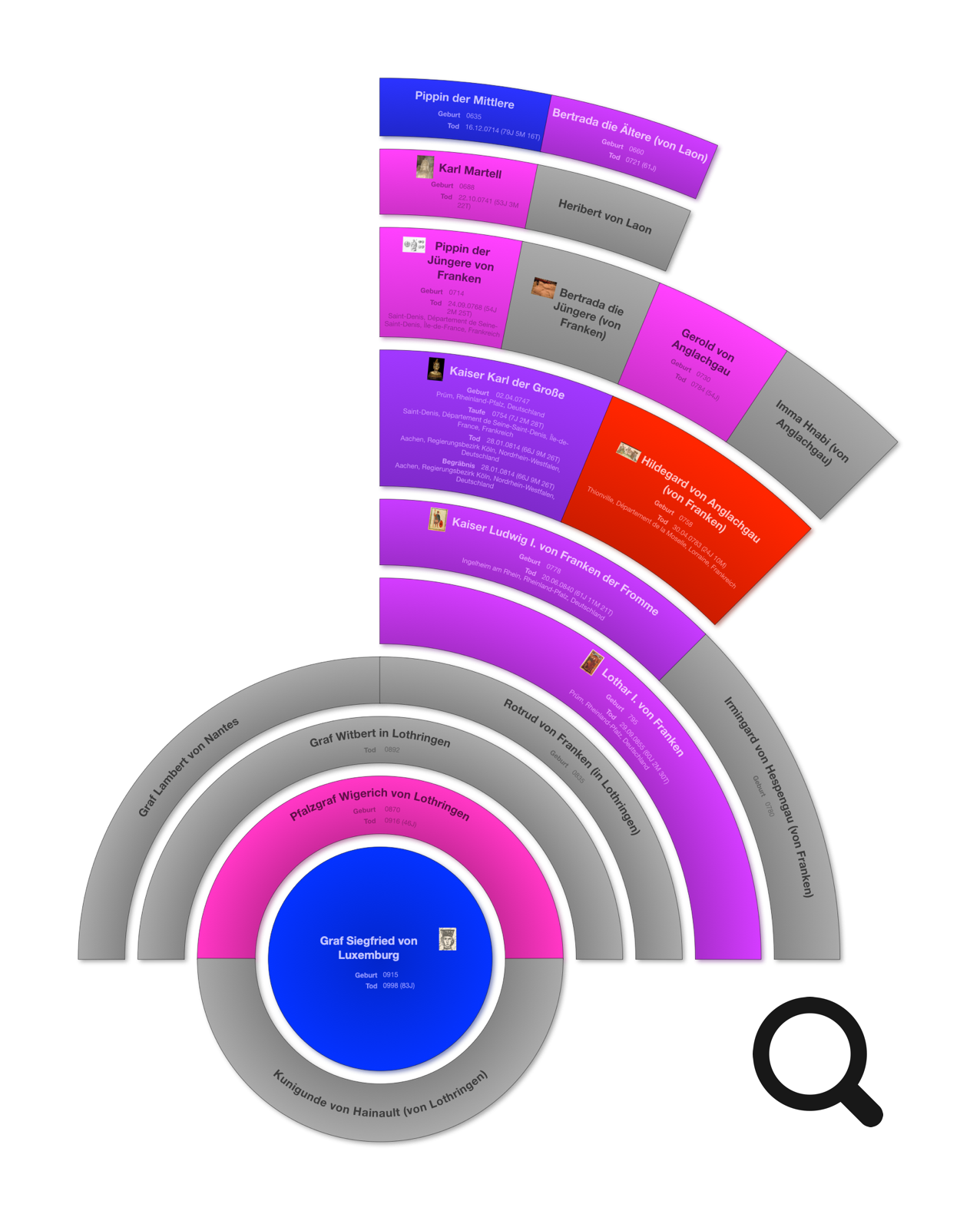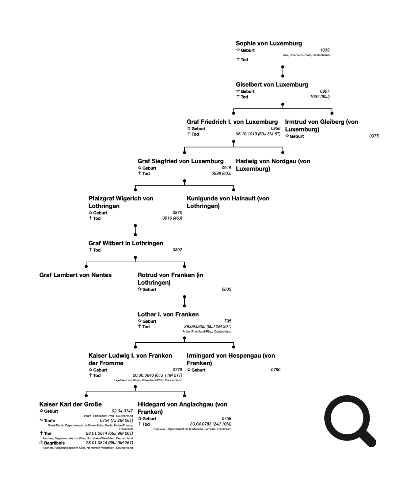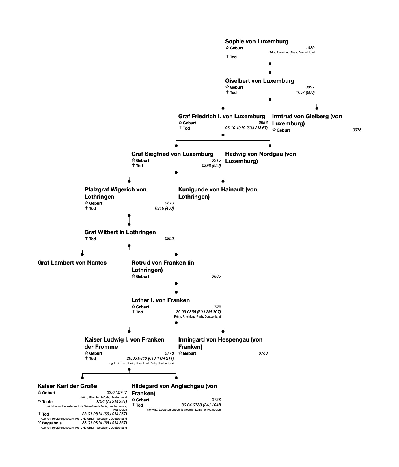 Giselbert von Luxemburg, Ahn der Kunigunde von Ammensleben, ist das Bindeglied zu den Karolingern.